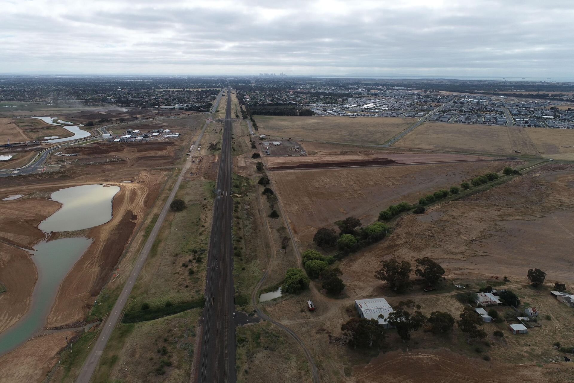 Ison Rd Overpass consists of a multi span bridge over the Melbourne – Geelong Railway at Werribee, 700m of dual carriageway road, service relocations.