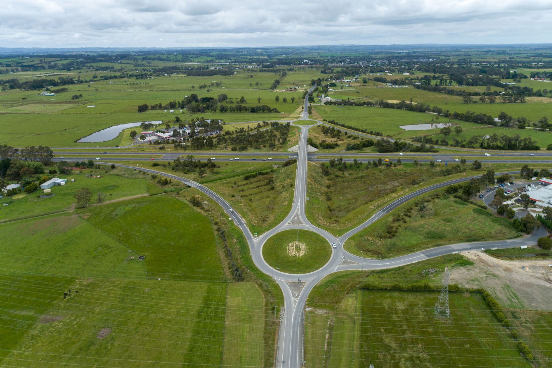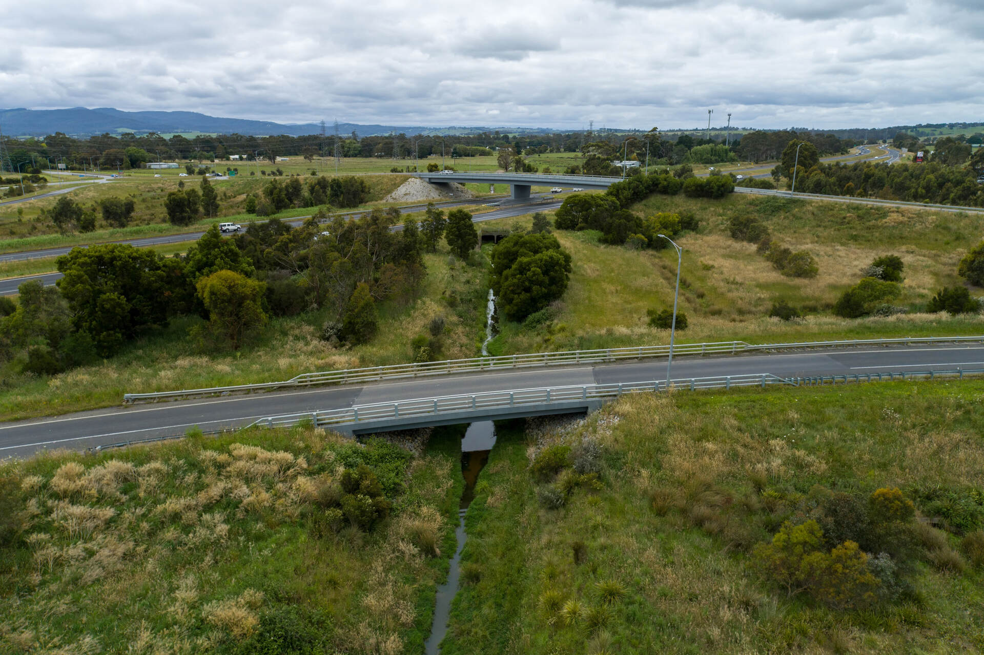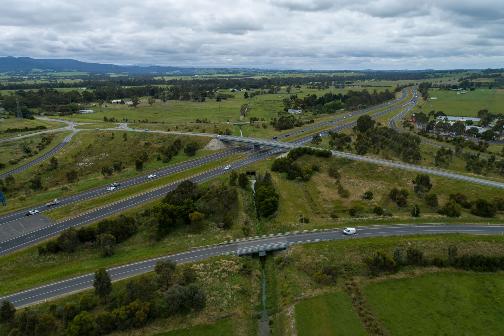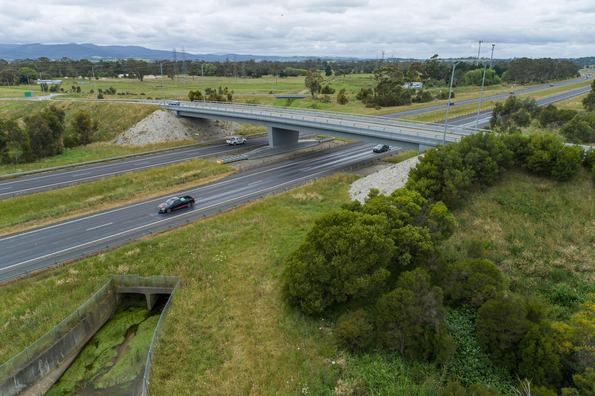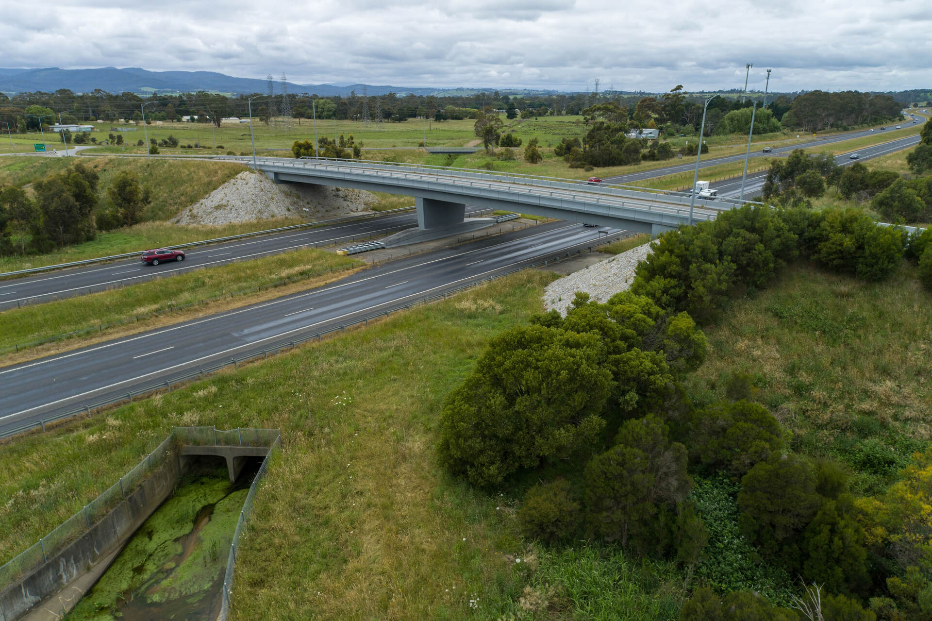 The undertaking comprised building a new multi-span bridge over the Princes Freeway (Sand Road), constructing single-span bridges for Ramps B and D crossing the Thompson’s Drain, designing and building a temporary Sand Road deviation to facilitate traffic access to Princes Freeway East, and erecting two roundabouts on Sand Road to finalize the full diamond interchange at Longwarry.