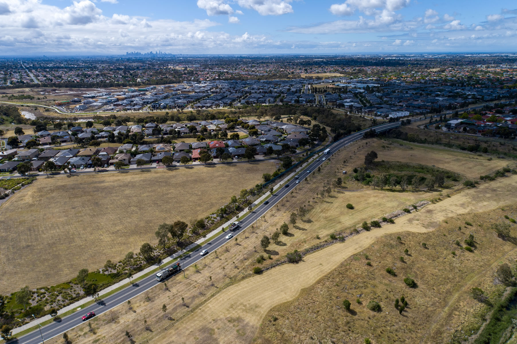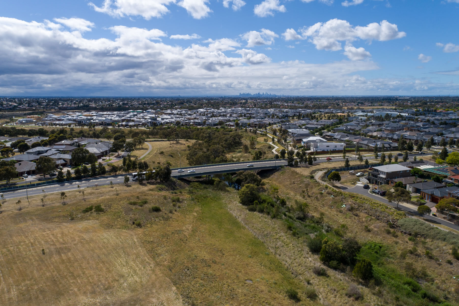 This project includes the construction of 950m of new road, and a multi-span bridge over Koroit Creek, also associated noise walls, and shared user paths.